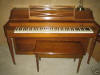 Spinet Pianos The spinet piano is the smallest of the vertical pianos. The spinet piano has what is called a dropped action. The piano action is the part of the piano that transfers the force of striking the key to the hammer striking the string. In appearance the spinet and console pianos are very similar. Some technicians charge more to work on spinet pianos because they feel they are more difficult to repair. There are more working parts in a spinet piano than a console but a qualified piano technician should be able to service the spinet piano at no additional charge.